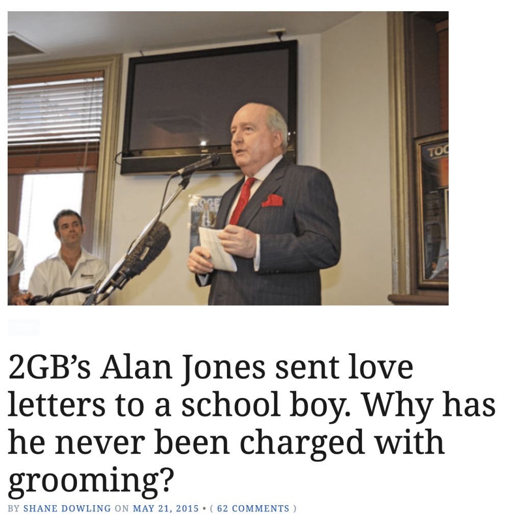 “Disquiet about Jones’s attachment to some boys grew during a term break when one of the masters found a letter, written by Jones to a boy, that had been left behind in a classroom desk. In it Alan spoke of thinking about the boy late at night, expressing his love. While love letters to boys were hardly appropriate, neither were they regarded as smoking gun evidence of misbehaviour.”