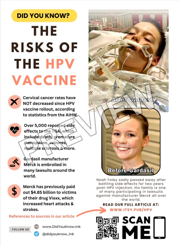 This was discovered by North Queensland mother, Michelle Stubbs, whose daughter Asha became seriously ill after HPV vaccination. Michelle submitted a Freedom of Information (FOI) request which you can view here.