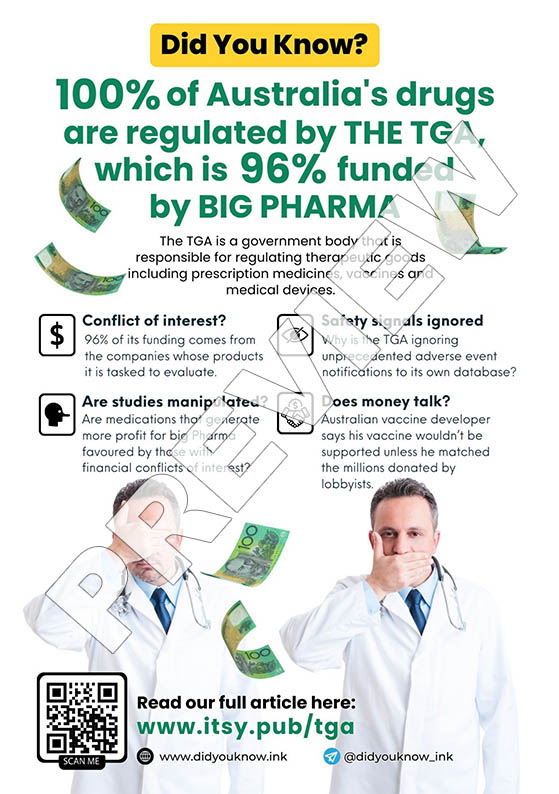 Did you know that the TGA is almost entirely funded by Big Pharma?