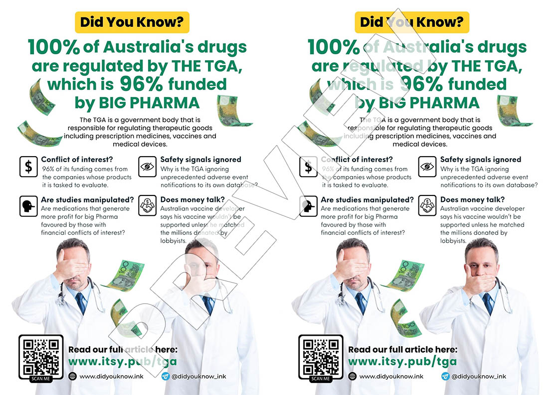“Like the FDA, the TGA was founded to be an independent institute. However, being largely funded by fees from the companies whose products it is charged to evaluate is a fundamental conflict of interest and a prime example of institutional corruption.”