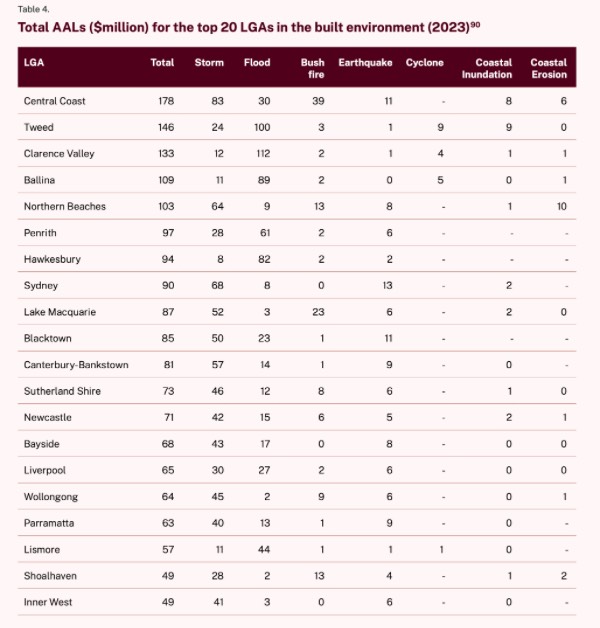 Of the top LGAs at risk of climate change, the Central Coast nsw is ranked the number one at risk. Here are the top 20: