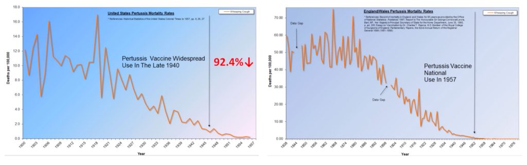 - Whooping cough (pertussis) deaths in England/Wales had already declined by 99.7% before the whooping cough vaccine reached national use in 1957.